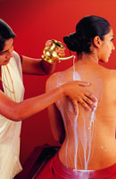 Autres traitements possibles (non exhaustif) UDVARTHANAM Pour hémiplégie, obésité et certaines affections rhumatismales. Massages thérapeutiques aux herbes. MARMA CHIKITSA Traitement pour les muscles et les os suite à un traumatisme ou un accident. Ce traitement est basé sur les marmas, points vitaux sensibles au nombre de 107. NASYAM Pour les affections nasales. Inhalations de préparations médicinales, décoctions, beurre, etc... pour évacuer de la tête et de la zône du cou les miasmes. KARNAPOORAM Traitement pour les affections des oreilles. Des huiles médicinales sont versées dans l'oreille pendant 5 à 10 minutes par jour, tant pour nettoyer que pour soigner les diffrentes affections. THARPANAM Prévention de la cataracte et renforcement de la vision. Un traitement efficace pour renforcer aussi le nerf optique. NAVARAKIZHI