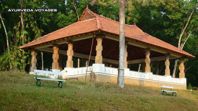 Le yoga hall du Duke's forest lodge a été construit avec des pilliers authentiques du 12 ème siècle, ce qui fait une superbe salle de yoga en plein air.